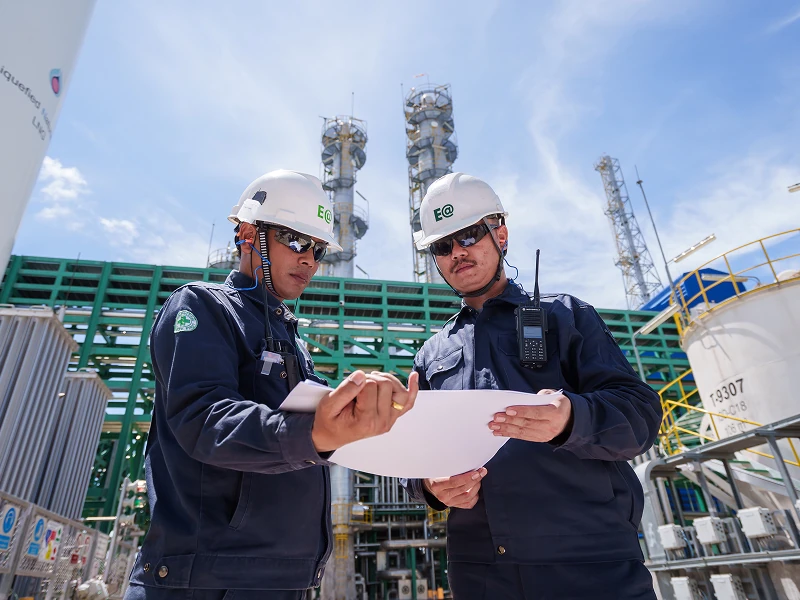 กลุ่มบริษัทเชื่อว่าการบริหารด้านความปลอดภัย อาชีวอนามัย และสภาพแวดล้อมในการทำงาน เป็นประเด็นสำคัญ ด้านความยั่งยืน การบริหารจัดการเพื่อป้องกันความเสี่ยง อุบัติการณ์ และผลกระทบต่อธุรกิจและผู้มีส่วนได้เสีย เป็นความรับผิดชอบขั้นพื้นฐาน เพื่อสร้างความเชื่อมั่นในการดำเนินธุรกิจต่อผู้มีส่วนได้ส่วนเสีย โดยเฉพาะอย่างยิ่งกลุ่มพนักงาน คู่ค้า และผู้มีส่วนได้เสีย โดยกลุ่มบริษัทมุ่งมั่นส่งเสริมให้ทุกหน่วยงานมีสภาพแวดล้อมที่ถูกสุขอนามัยและมีความ ปลอดภัย และยึดถือปฏิบัติอย่างต่อเนื่องและจริงจัง ควบคู่กับการพัฒนาองค์กรเพื่อมุ่งสู่ความเป็นเลิศ เพื่อสร้างความ ปลอดภัยในการทำงานของบริษัท จึงได้ประกาศ “นโยบายคุณภาพ สิ่งแวดล้อม อาชีวอนามัยและความปลอดภัย” โดยกำหนดแนวทางในการปฎิบัติให้สอดคล้องกับกฎหมาย และมาตรฐานสากล ด้วยมาตรการป้องกันความเสี่ยงซึ่งอาจ เกิดขึ้นจากอุบัติเหตุ การบาดเจ็บและการเจ็บป่วยจากการทำงาน พร้อมส่งเสริมให้มีการปรับปรุงสภาพแวดล้อมในการ ทำงานให้เหมาะสมต่อสภาพสภาพจิตใจและถูกสุขลักษณะ เพื่อคุณภาพชีวิตในการทำงานและสุขภาพของพนักงาน โดยมุ่งเน้นให้พนักงานทุกคนมีส่วนร่วมในการปรับปรุง เปลี่ยนแปลงวิธีการทำงานของตนเองให้ดียิ่งขึ้นอยู่เสมอ และแผนการ บริหารจัดการสิ่งแวดล้อมในการทำงาน คือ การใส่ใจถึงการปฏิบัติงาน อันอาจเกิดผลกระทบต่อภายในและภายนอก องค์กร โดยอ้างอิงแนวทางปฏิบัติตามแนวทางมาตรฐานสากล ISO 45001:2018 หลักการด้าน Process Safety Management (PSM) และแนวทางปฏิบัติอื่นที่เกี่ยวข้องตามแต่กลุ่มอุตสาหกรรม ควบคู่กับการประเมินความสอดคล้องของกฎหมายที่เกี่ยวข้อง